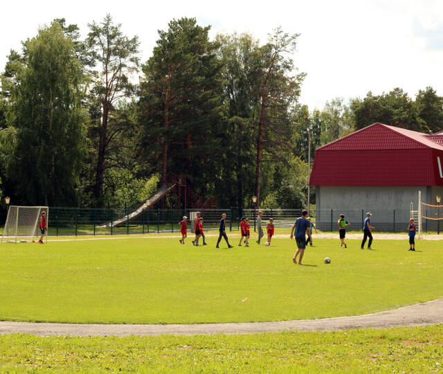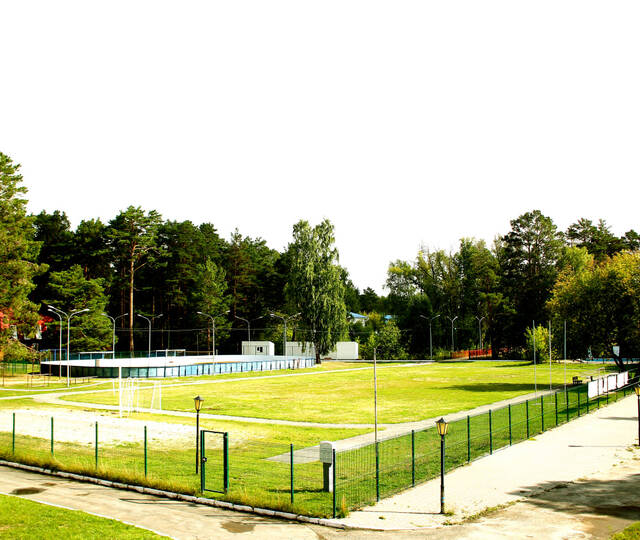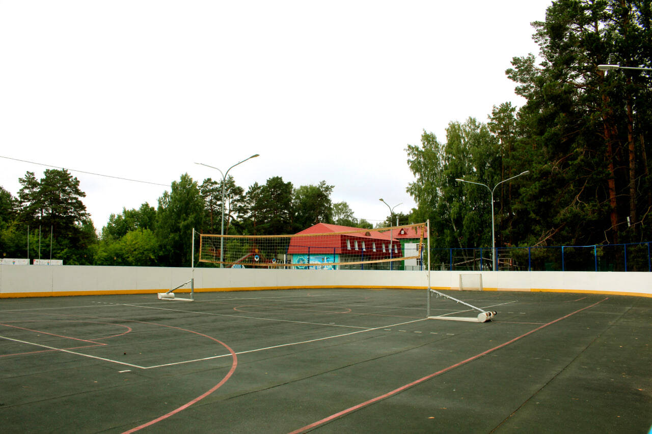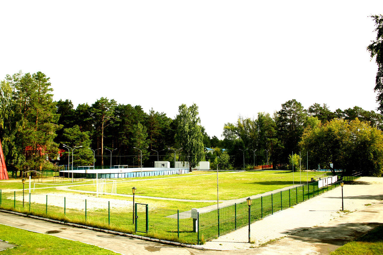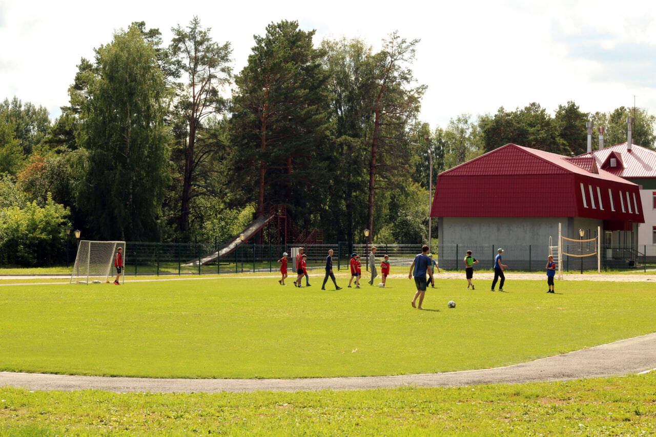 Спортивные площадки и сооружения: спортивный зал, открытый бассейн площадью 260 кв. м, с полностью оборудованным пляжем, закрытый бассейн с раздевалками, душем и комнатой для отдыха, сауна, стадион - футбольное поле, волейбольная площадка, баскетбольная площадка, роликовая площадка, каток, хоккейный корт (в зимнее время), лыжная трасса, площадка для стрельбы из лука, скалодром, теннисный корт, летний тир. В 2022 году открылся новый объект - конноспортивный комплекс для занятий верховой ездой с отдыхающими детьми, в том числе с детьми, имеющими инвалидность и ОВЗ.