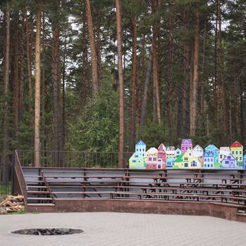 В лагере имеются помещения для организации досуга: открытая летняя эстрада "Ракушка", 2 закрытых актовых зала, звукозаписывающая студия, помещения для ведения кружковой работы, беседки для отдыха, на территории лагеря для сотрудников и совершеннолетних гостей есть доступ в Интернет, танцевальный зал.