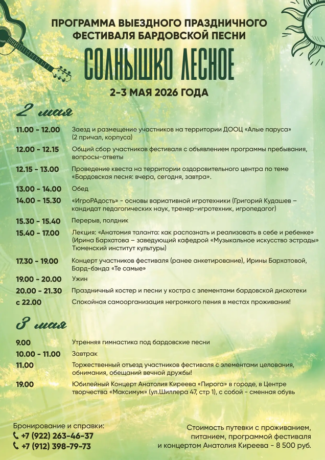 Детский центр «Алые паруса» станет площадкой Фестиваля любителей бардовской песни «Солнышко лесное» , который пройдёт в тёплые майские дни в душевной атмосфере музыки, природы и живого общения!